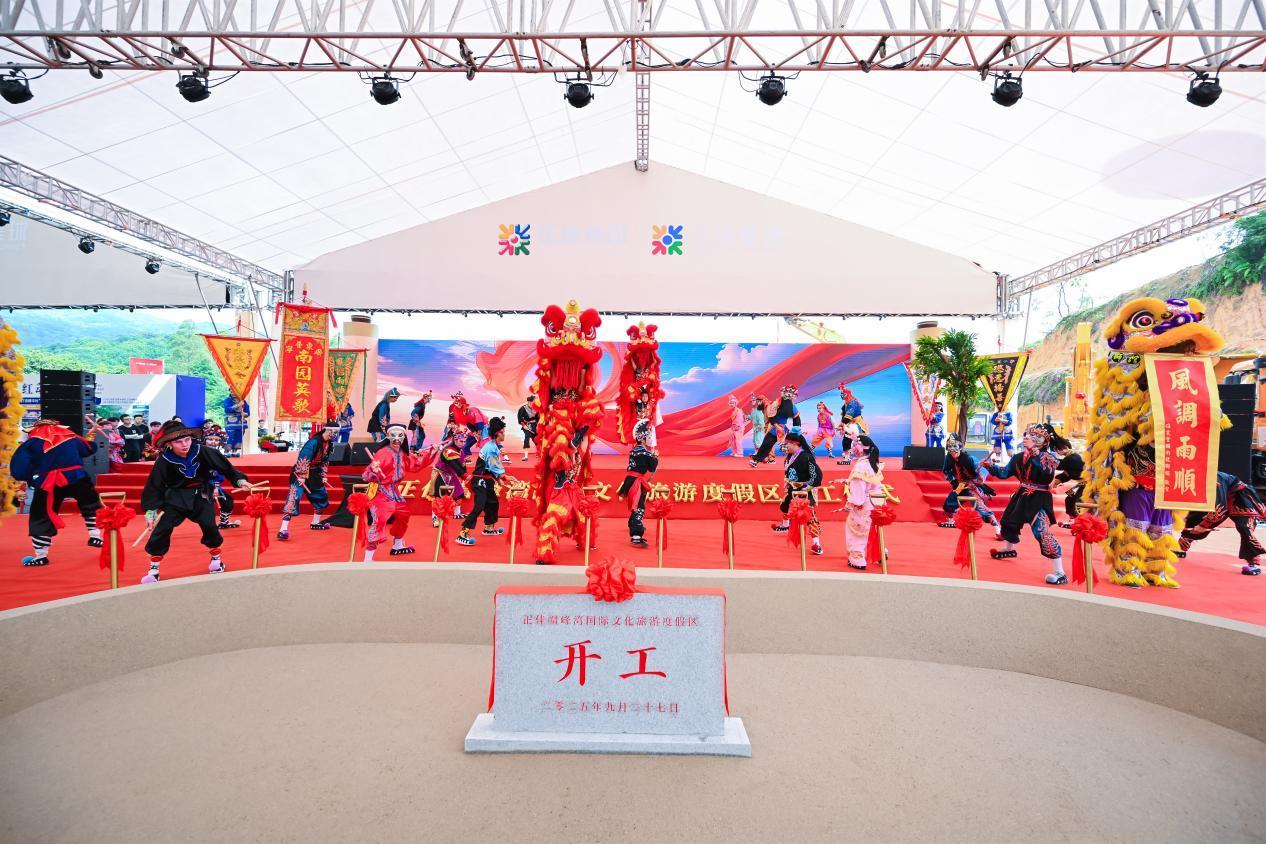 9月27日上午,广东省重点建设项目、省旅游发展大会签约项目、广州市和白云区“百千万工程”重点项目——正佳帽峰湾国际文化旅游度假区项目在位于广州市白云区太和镇穗丰村的帽峰山东南麓举行开工仪式。省、市、区各级领导,正佳集团企业高层,以及中国国家创新与发展战略研究会等行业专家、国际合作伙伴代表等300余人齐聚现场,共同见证这一大湾区文旅产业高质量发展的重要时刻。