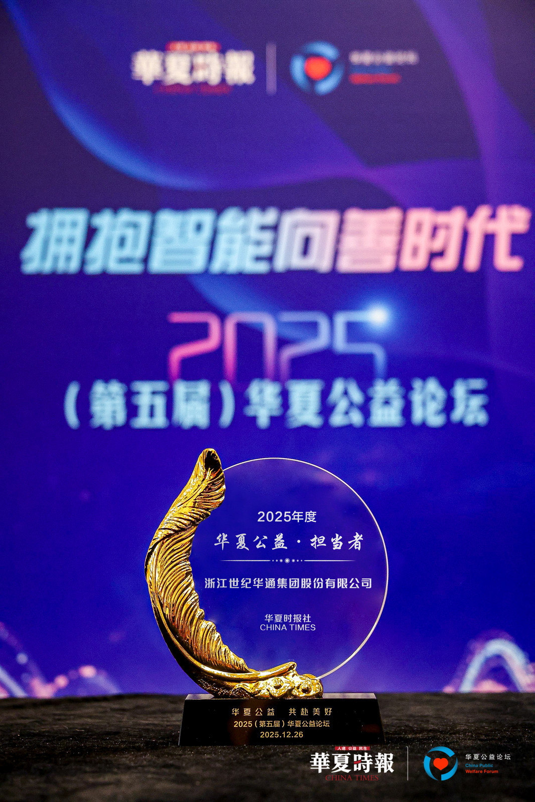 12月26日,由华夏时报社主办的2025(第五届)华夏公益论坛在北京举行。会上,“2025华夏公益典范案例”正式揭晓,世纪华通凭借过去一年在公益领域的突出表现,荣获2025“华夏公益·担当者”荣誉称号,成为游戏企业践行社会责任的典范代表。