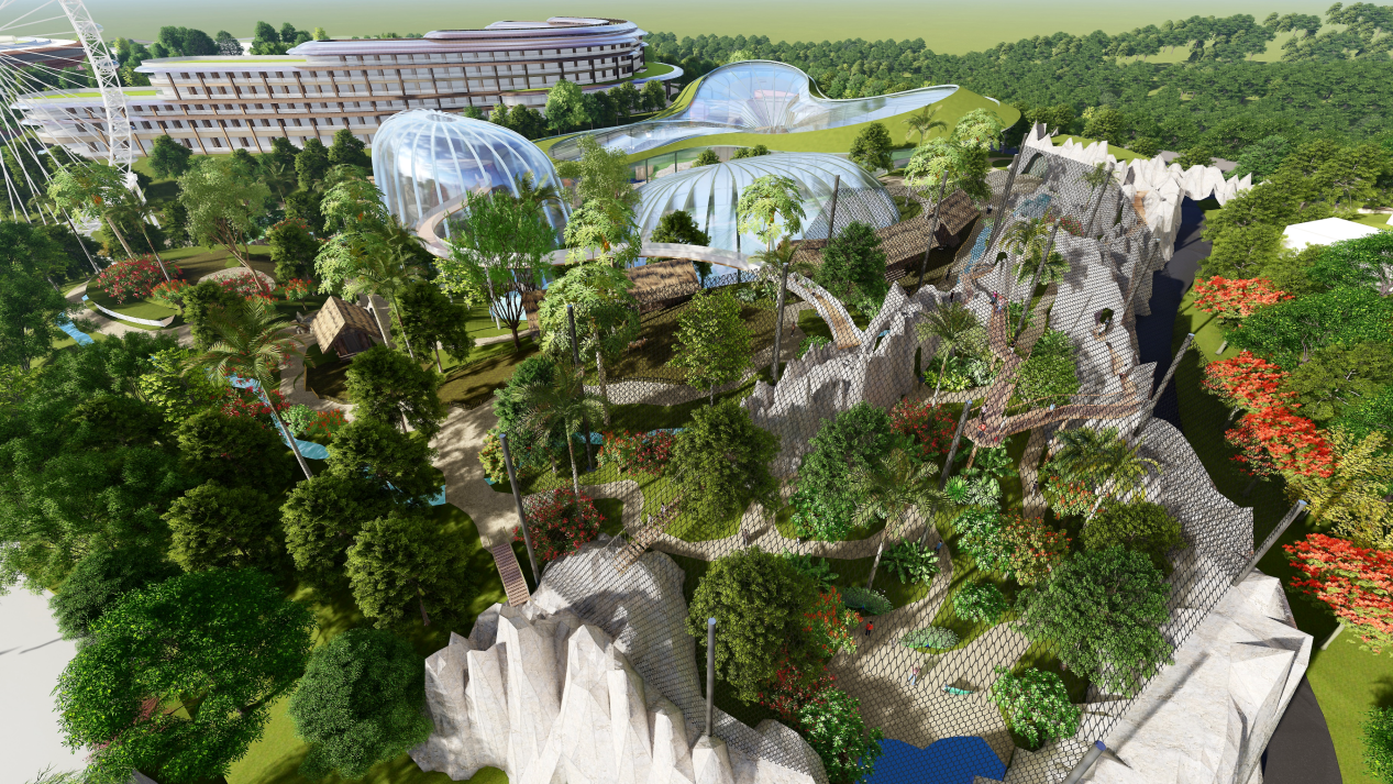 生态保护是项目的前提,项目将秉持“山水共生”的理念,利用现有地形地貌建设,最大限度地减少对原有生态系统的干扰,并且以项目实现生态效益增值,比如说海豚湾、冰雪世界、国家级大型植物园等项目,都能提升区域的生物多样性和生态价值。